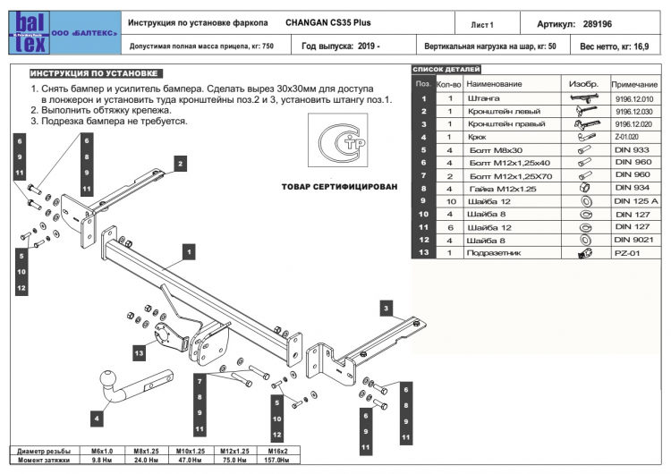 В комплекте: фаркоп, шар фаркопа, вставка фаркопа, штифт шплинтованный.