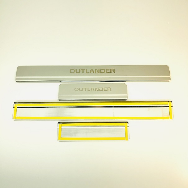 Накладки на пороги INOX (лист зеркальный, надпись Outlander) из нержавеющей, полированной стали. Марка стали AISI 304, Италия. Накладки подходят для автомобиля MITSUBISHI Outlander (Митсубиши Аутлендер) с 2012 года выпуска.