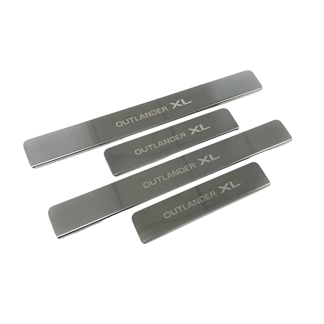 Накладки на пороги INOX (лист зеркальный, надпись Outlander XL) из нержавеющей, полированной стали. Марка стали AISI 304, Италия. Накладки подходят для автомобиля MITSUBISHI Outlander XL (Митсубиши Аутлендер ХЛ) с 2005 по 2012 год выпуска.