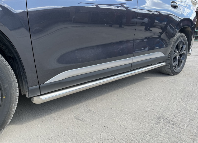 Защита штатного порога из нержавеющей, полированной стали. Диаметр трубы 60 мм. Толщина стенки 1,5 мм. Марка стали AISI 304, Италия. Пороги подходят для автомобиля Chery Exeed VX (Чери Эксид VX) с 2022 года выпуска.