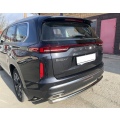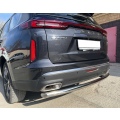 Защита заднего бампера из нержавеющей, полированной стали. Диаметр трубы 60 мм. Толщина стенки 1,5 мм. Марка стали AISI 304, Италия. Защита бамперов подходит для автомобиля Chery Exeed VX (Чери Эксид VX) с 2022 года выпуска.