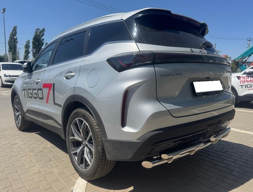 Защита заднего бампера двойная с перемычками из нержавеющей, полированной стали. Диаметр трубы 60-42 мм. Толщина стенки 1,5 мм. Марка стали AISI 304, Италия. Защита бампера подходит для автомобиля Chery Tiggo 7L с 2025 года выпуска.