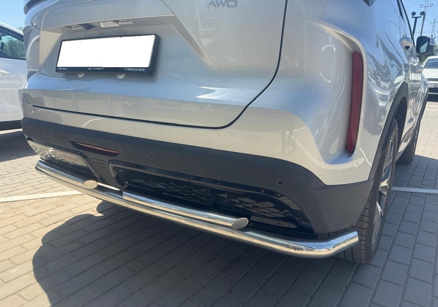 Защита заднего бампера угловая большая двойная из нержавеющей, полированной стали. Диаметр трубы 60-42 мм. Толщина стенки 1,5 мм. Марка стали AISI 304, Италия. Защита бампера подходит для автомобиля Chery Tiggo 7L с 2025 года выпуска.