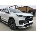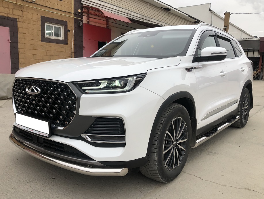 Защита переднего бампера из нержавеющей, полированной стали. Диаметр трубы 60 мм. Толщина стенки 1,5 мм. Марка стали AISI 304, Италия. Защита бампера подходит для автомобиля Chery Tiggo 8 Pro MAX (Чери Тигго 8 Про Макс) с 2022 года выпуска.