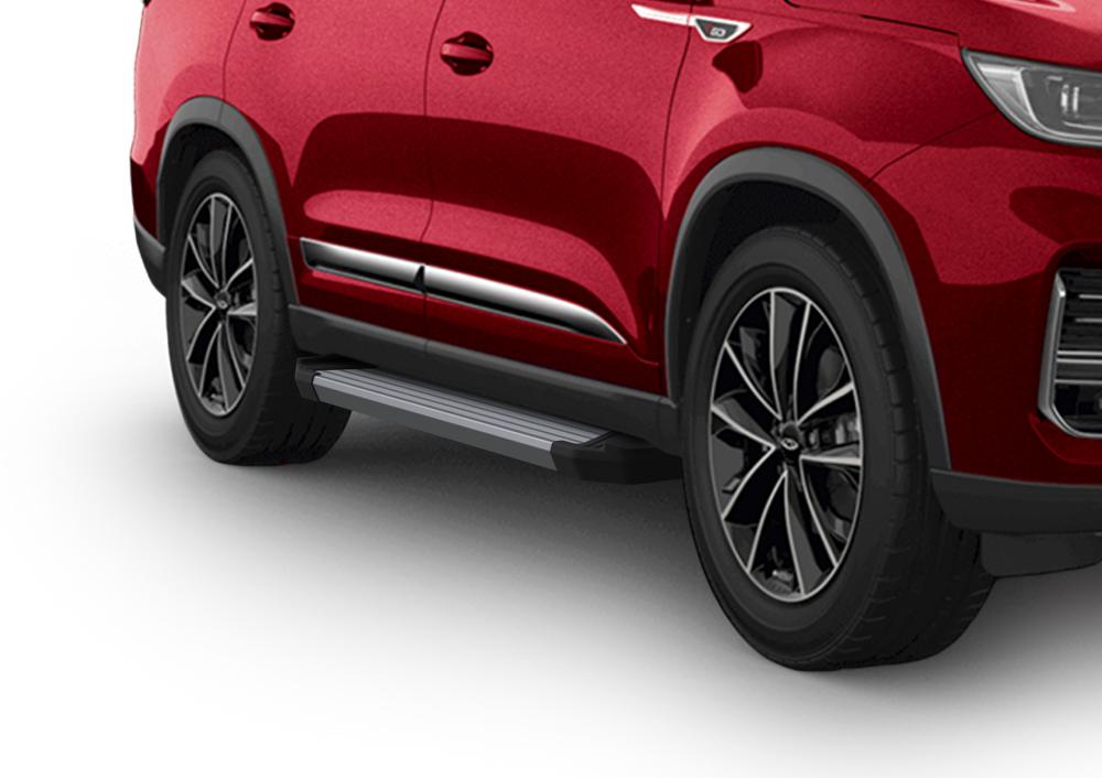 Ударопрочные и надежные пороги SILVER алюминиевые с полипропиленовыми вставками. Подходят для автомобиля Chery Tiggo 8 Pro (Чери Тигго 8 Про) с 2021 года выпуска.
