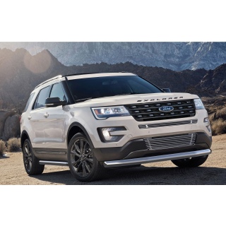 Защита переднего бампера FORD Explorer (Форд Експлорер) - это навесное оборудование (обвес), с помощью которого снижаются повреждения переднего бампера впоследствии непредвиденных ситуаций на дороге, повышается уровень безопасности водителя и пассажиров. К тому же обвесы из нержавеющей стали заметно выделяют Ваш автомобиль в городе и придают Вашему внедорожнику мощный и в тоже время уникальный, стильный вид.