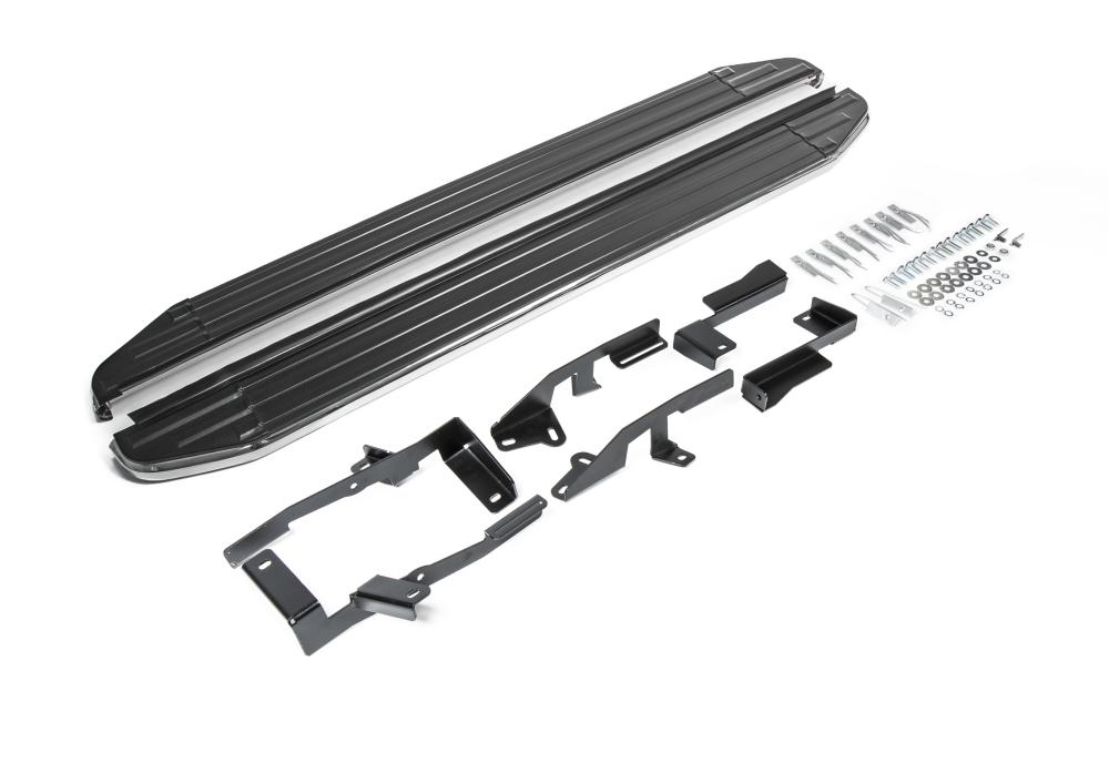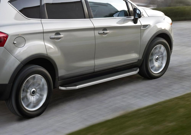 Пороги алюминиевые с нержавеющим полированным кантом. Пороги подходят для автомобиля FORD Kuga (Форд Куга) с 2013 года выпуска.