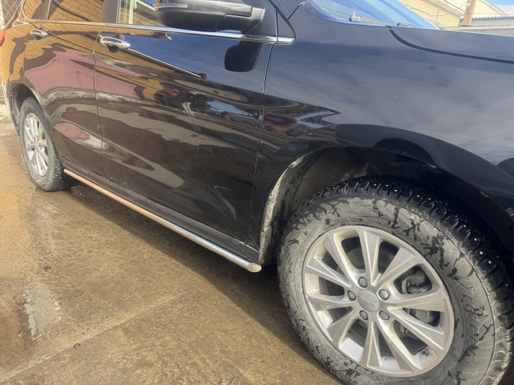 Защита штатного порога из нержавеющей, полированной стали. Диаметр трубы 42 мм. Толщина стенки 1,5 мм. Марка стали AISI 304, Италия. Пороги подходят для автомобиля HAVAL М6 с 2023 года выпуска.