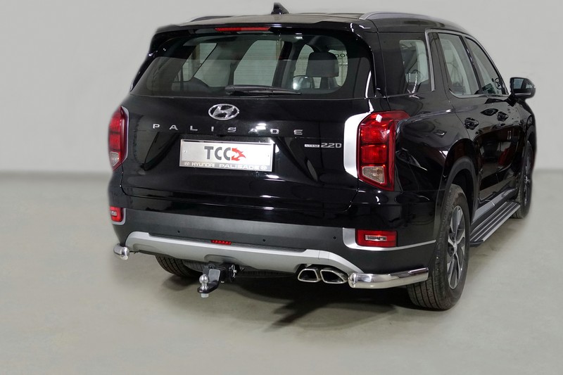 Защита заднего бампера "уголки овальные" из нержавеющей, полированной стали. Диаметр трубы 75х42 мм. Толщина стенки 1,5 мм. Марка стали AISI 304, Италия. Защита бампера подходит для моделей HYUNDAI Palisade (Хендай Палисад) с 2021 года выпуска.