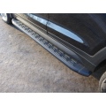 Пороги алюминиевые с пластиковой накладкой карбон (серебро, серые, черные). Пороги подходят для автомобиля Hyundai Tucson (Хендай Туссан) с 2015 года выпуска.
