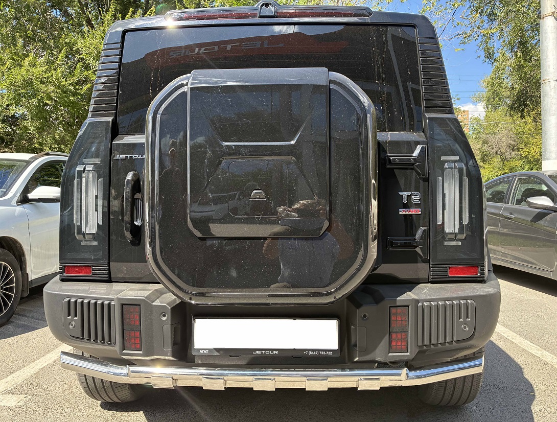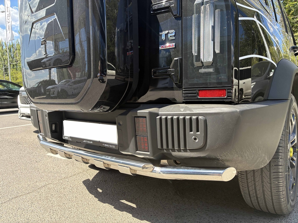 Защита заднего бампера двойная с перемычками из нержавеющей, полированной стали. Диаметр трубы 60-42 мм. Толщина стенки 1,5 мм. Марка стали AISI 304, Италия. Защита бампера подходит для автомобиля Jetour T2 с 2024 года выпуска.