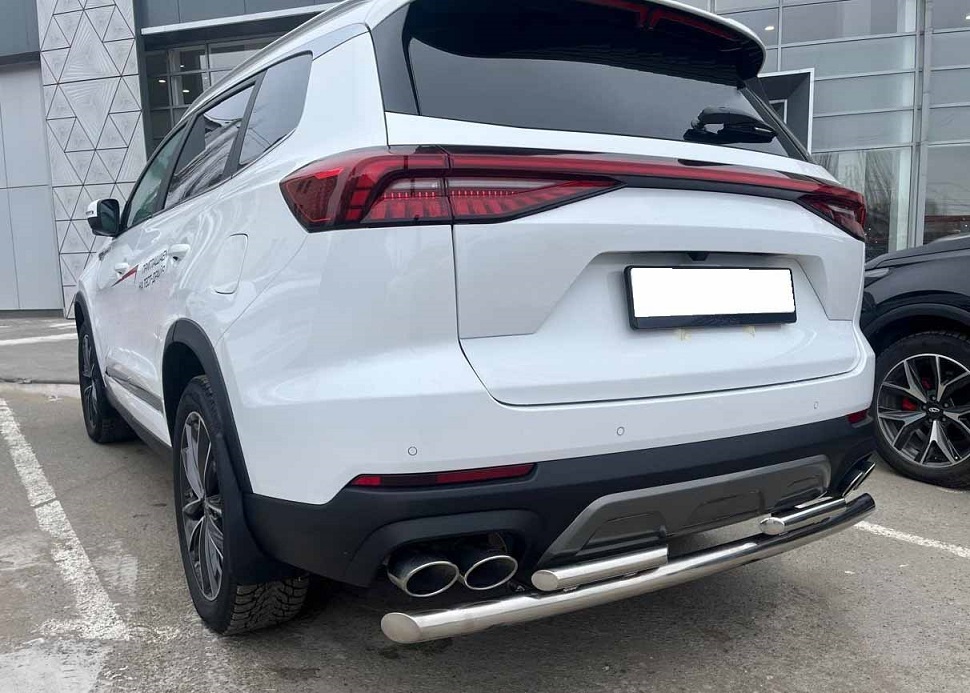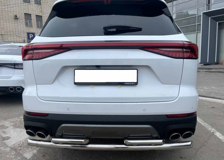 Защита заднего бампера двойная из нержавеющей, полированной стали. Диаметр трубы 60-42 мм. Толщина стенки 1,5 мм. Марка стали AISI 304, Италия. Защита бамперов подходит для автомобиля Xcite X-Cross 8 с 2025 года выпуска.