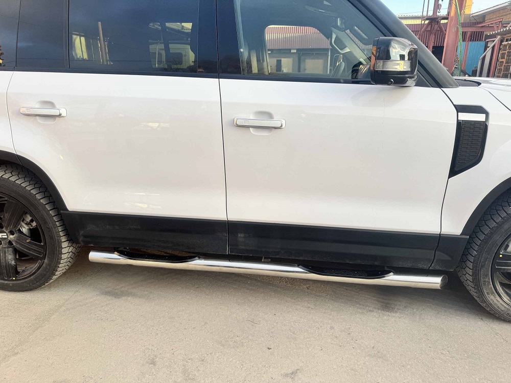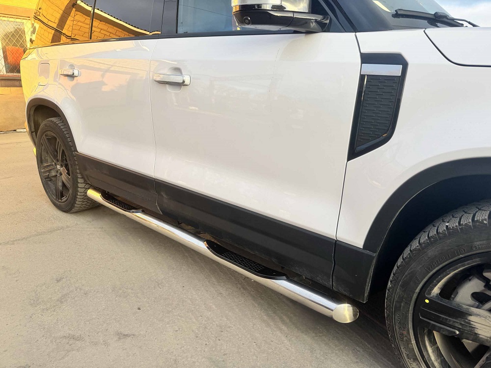 Пороги труба из нержавеющей, полированной стали с пластиковыми накладками. Диаметр трубы 76 мм. Толщина стенки 1,5 мм. Марка стали AISI 304, Италия. Пороги подходят для автомобиля ROX 01 с 2024 модельного года.