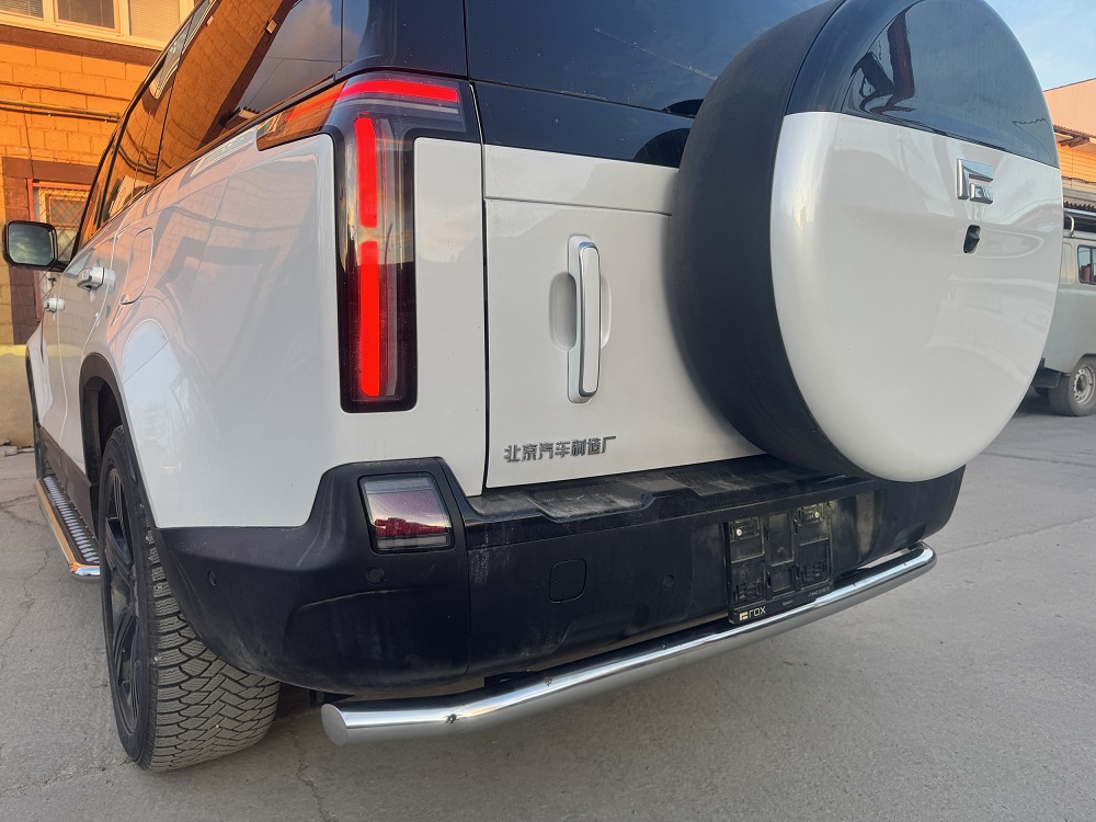 Защита заднего бампера из нержавеющей, полированной стали. Диаметр трубы 60 мм. Толщина стенки 1,5 мм. Марка стали AISI 304, Италия. Защита подходит для автомобиля ROX 01 с 2024 года выпуска.