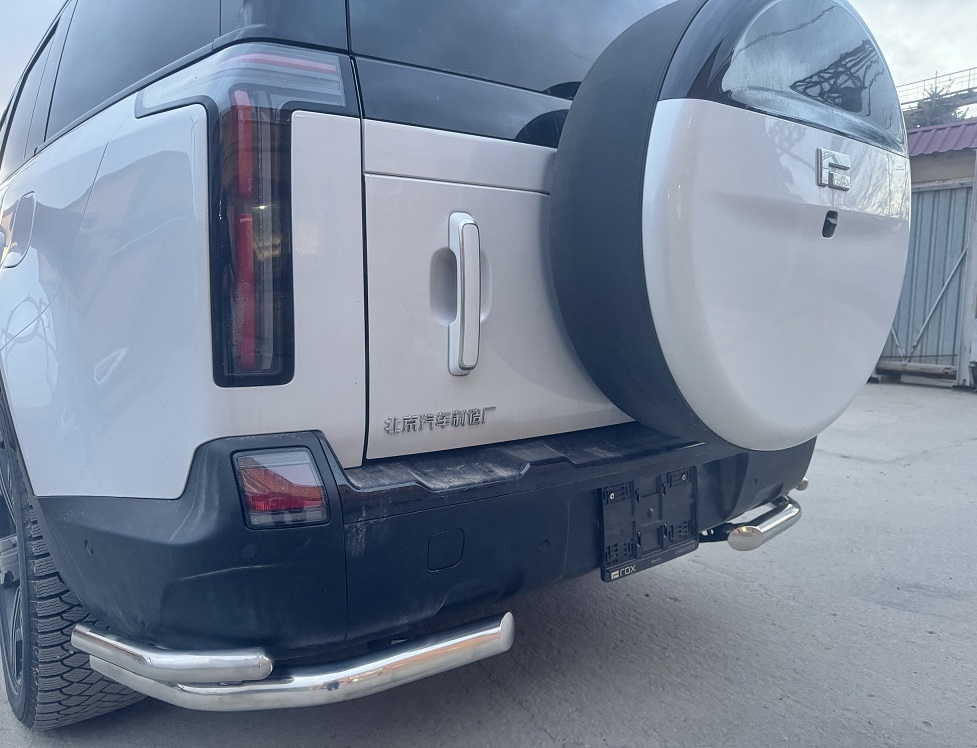 Защита заднего бампера "уголки двойные" из нержавеющей, полированной стали. Диаметр трубы 60-42 мм. Толщина стенки 1,5 мм. Марка стали AISI 304, Италия. Защита подходит для автомобиля ROX 01 с 2024 года выпуска.