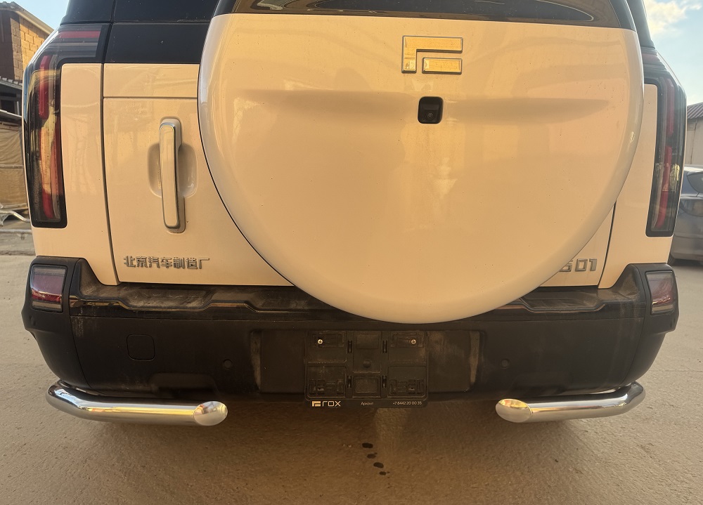 Защита заднего бампера "уголки" из нержавеющей, полированной стали. Диаметр трубы 60 мм. Толщина стенки 1,5 мм. Марка стали AISI 304, Италия. Защита подходит для автомобиля ROX 01 с 2024 года выпуска.