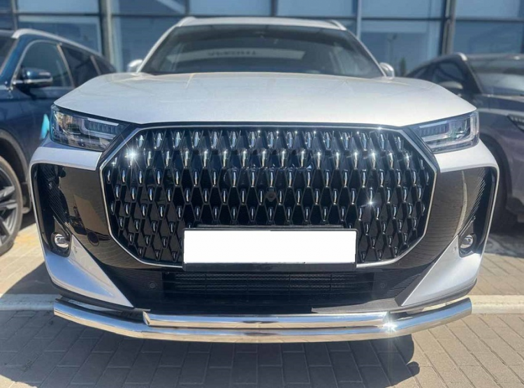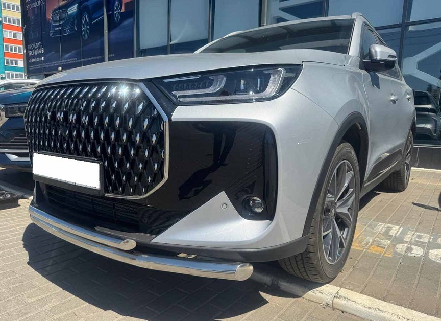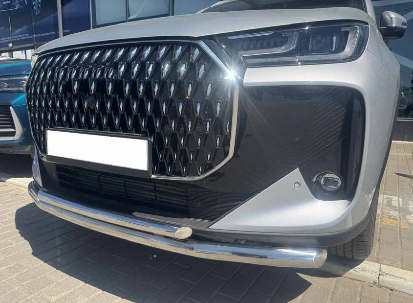 Защита переднего бампера двойная из нержавеющей, полированной стали. Диаметр трубы 60-42 мм. Толщина стенки 1,5 мм. Марка стали AISI 304, Италия. Защита бампера подходит для автомобиля TENET T7 с 2025 года выпуска.