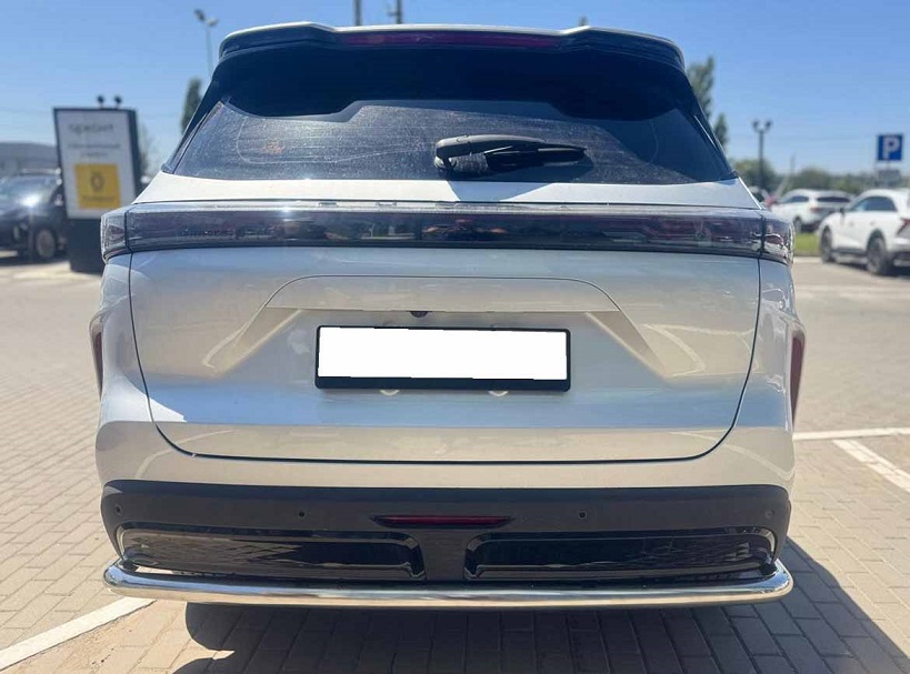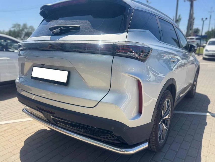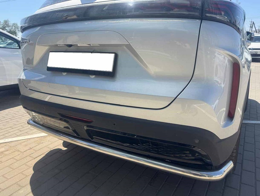 Защита заднего бампера с загибами из нержавеющей, полированной стали. Диаметр трубы 60 мм. Толщина стенки 1,5 мм. Марка стали AISI 304, Италия. Защита подходит для автомобиля TENET T7 с 2025 года выпуска.