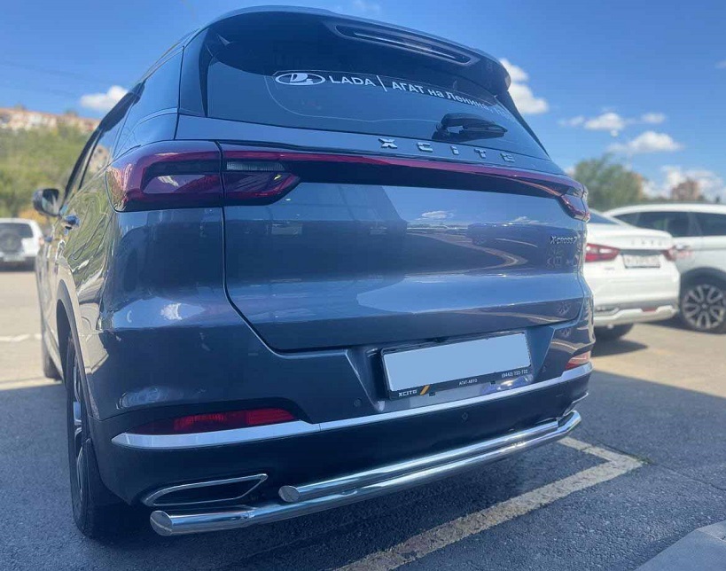 Защита заднего бампера двойная из нержавеющей, полированной стали. Диаметр трубы 60-42 мм. Толщина стенки 1,5 мм. Марка стали AISI 304, Италия. Защита бамперов подходит для автомобиля Xcite X-Cross 7 с 2024 года выпуска.