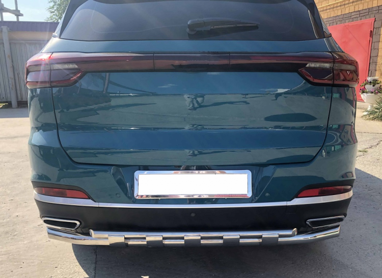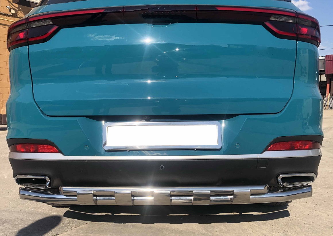 Защита заднего бампера двойная с перемычками из нержавеющей, полированной стали. Диаметр трубы 60-42 мм. Толщина стенки 1,5 мм. Марка стали AISI 304, Италия. Защита бампера подходит для автомобиля Xcite X-Cross 7 с 2024 года выпуска.
