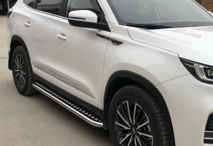 Пороги для авто площадкой из нержавеющей, полированной стали с алюминиевым листом. Диаметр трубы 60 мм. Толщина стенки 1,5 мм. Марка стали AISI 304, Италия. Пороги подходят для автомобиля Xcite X-Cross 8 с 2025 года выпуска.