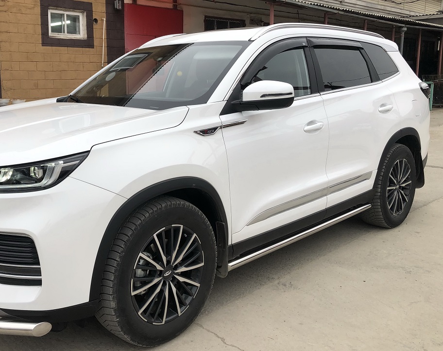 Пороги труба из нержавеющей, полированной стали. Диаметр трубы 60 мм. Толщина стенки 1,5 мм. Марка стали AISI 304, Италия. Пороги подходят для автомобиля Xcite X-Cross 8 с 2025 года выпуска.