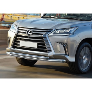 Защита переднего бампера LEXUS LX-450d (Лексус LX-450d) с 2015 года - это навесное оборудование (обвес), с помощью которого снижаются повреждения переднего бампера впоследствии непредвиденных ситуаций на дороге, повышается уровень безопасности водителя и пассажиров. К тому же обвесы из нержавеющей стали заметно выделяют Ваш автомобиль в городе и придают Вашему внедорожнику мощный и в тоже время уникальный стильный вид.