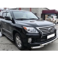 Защита штатного порога из нержавеющей, полированной стали. Диаметр трубы 42 мм. Толщина стенки 1,5 мм. Марка стали AISI 304, Италия. Защита штатного порога подходит для автомобиля LEXUS LX-570 (Лексус LX-570) с 2012 года выпуска.