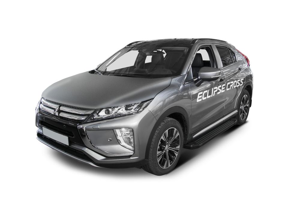 Пороги алюминиевые BLACK с полипропиленовыми вставками. Подходят для автомобиля MITSUBISHI Eclipse Cross (Митсубиши Эклипс Кросс) с 2018 года выпуска.