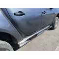Пороги труба из нержавеющей, полированной стали с пластиковыми накладками и дополнительной защитой из алюминиего листа. Диаметр трубы 76 мм. Толщина стенки 1,5 мм. Марка стали AISI 304, Италия. Пороги подходят для MITSUBISHI L-200 (Митсубиши L-200) с 2006 года выпуска.