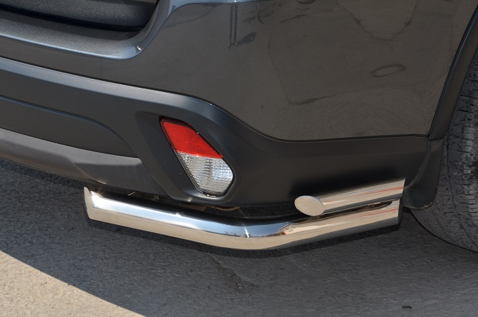 Защита заднего бампера "уголки двойные" из нержавеющей, полированной стали. Диаметр трубы 60-42 мм. Толщина стенки 1,5 мм. Марка стали AISI 304, Италия. Защита заднего бампера подходит для автомобиля MITSUBISHI Outlander (Митсубиши Аутлендер) c 2015 по 2018 год.