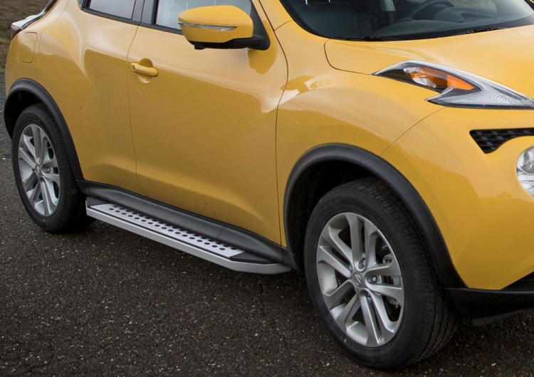 Пороги алюминиевые "BMW-style В". Пороги подходят для автомобиля NISSAN Juke (Ниссан Жук) с 2010 года выпуска.