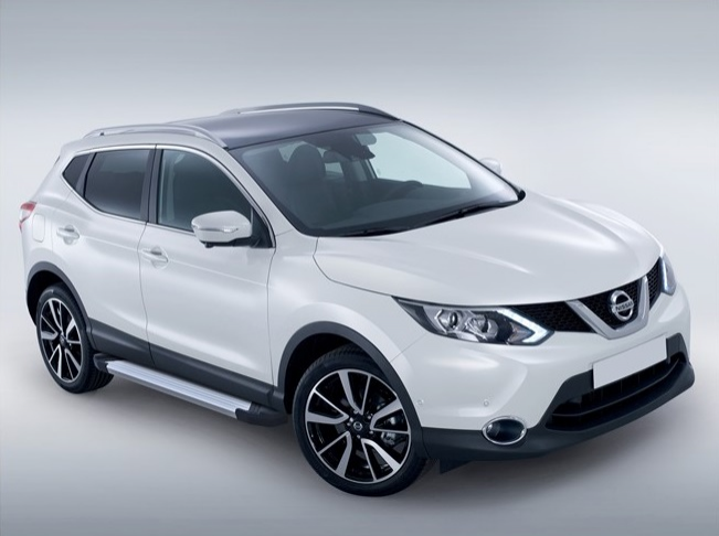 Пороги алюминиевые SILVER с полипропиленовыми вставками. Подходят для автомобиля NISSAN Qashqai (Ниссан Кашкай) с 2007 года выпуска.