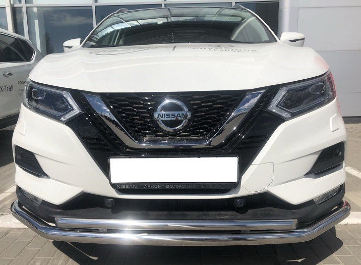 Защита переднего бампера, двойная с двумя подгибами. Диаметр трубы 60-42 мм. Изготовлено из нержавеющей, полированной стали. Марка стали AISI 304, Италия. Толщина стенки 1.5 мм. Защита переднего бампера подходит для автомобиля NISSAN Qashqai (Ниссан Кашкай) с 2019 года выпуска.
