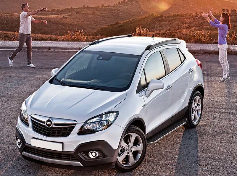 Пороги алюминиевые с нержавеющим кантом для Opel Mokka, на Опель Мокка.