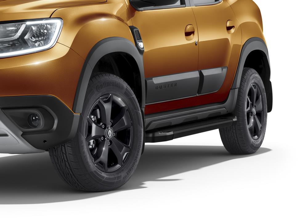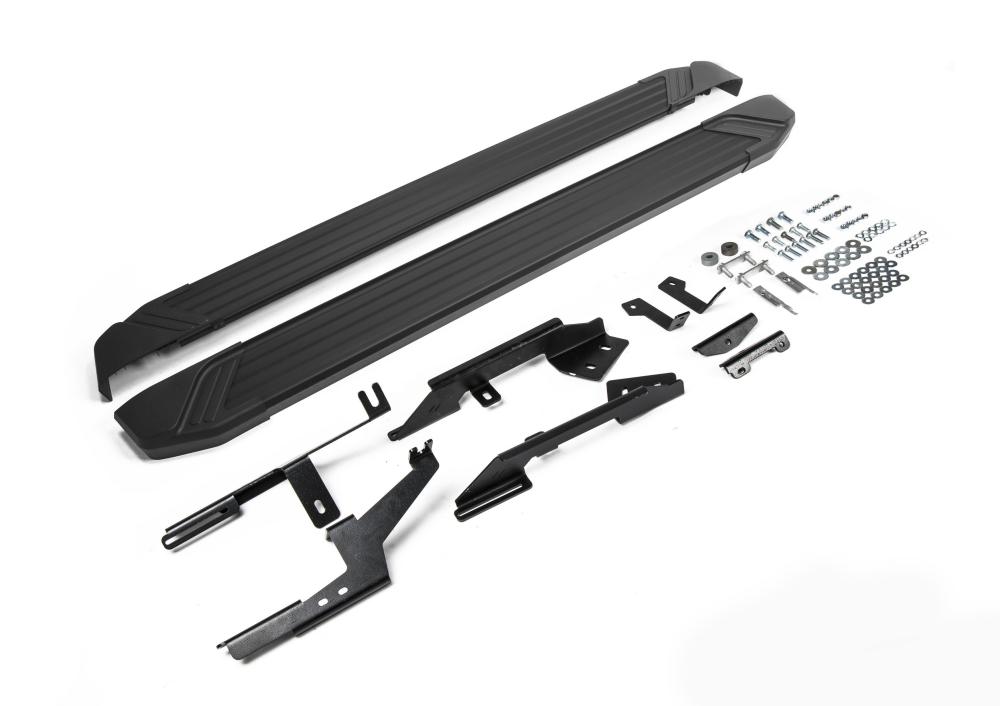 Пороги алюминиевые BLACK с полипропиленовыми вставками. Подходят для автомобиля RENAULT Duster (Рено Дастер) с 2021 года выпуска.