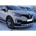 Защита переднего бампера с декором из нержавеющей, полированной стали. Диаметр трубы 60-60 мм. Толщина стенки 1,5 мм. Марка стали AISI 304, Италия. Защита бампера подходит для автомобиля Renault Kaptur (Рено Каптур) с 2016 года выпуска.