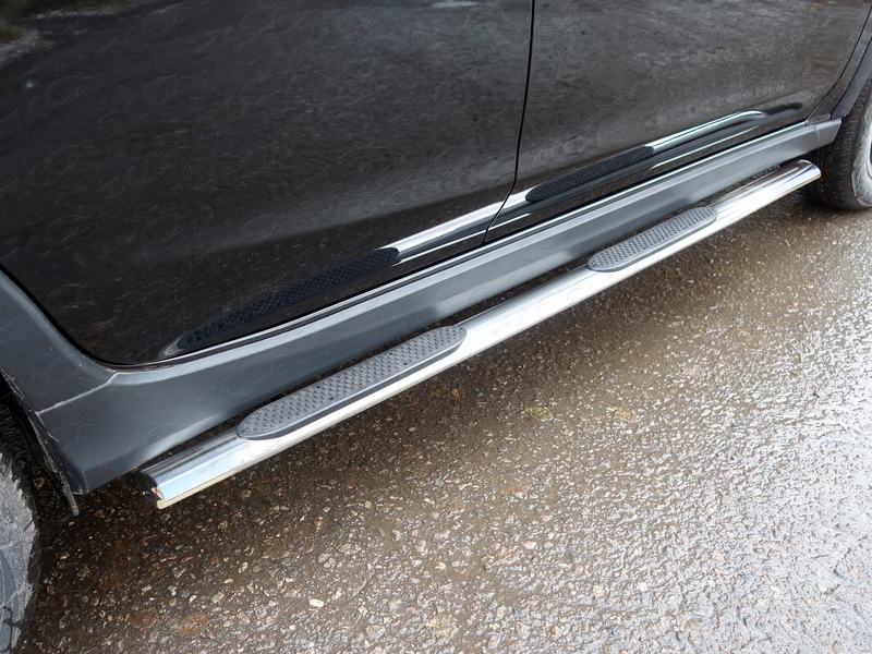 Пороги овальные с накладкой, d75х42 мм Subaru XV (Субару XV) с 2017 года