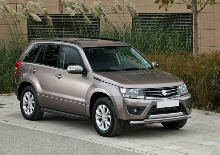 Пороги алюминиевые с черным стальным кантом для SUZUKI Grand Vitara, на Сузуки Гранд Витара с 2012 года выпуска.