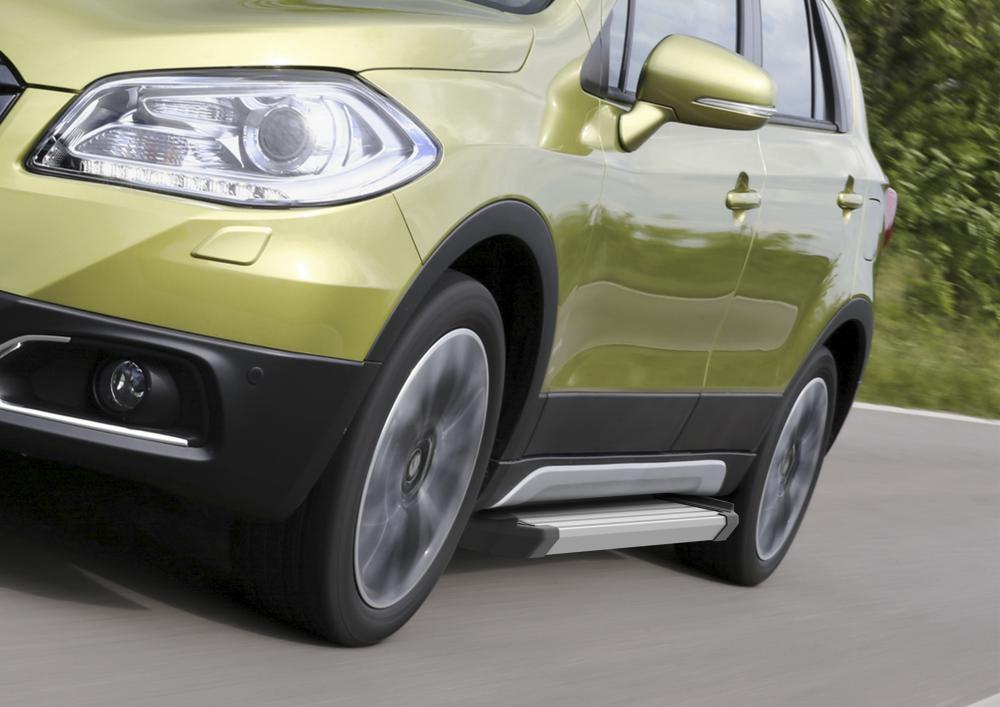 Пороги алюминиевые SILVER с полипропиленовыми вставками. Подходят для автомобиля SUZUKI SX-4 (Сузуки SX-4) с 2015 года выпуска.