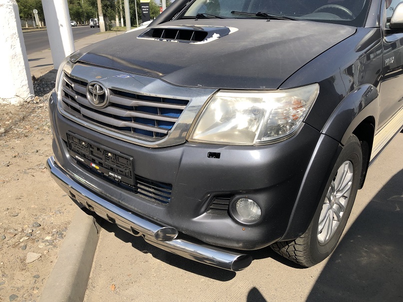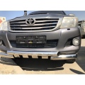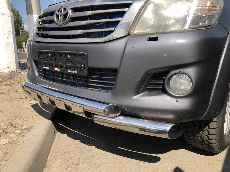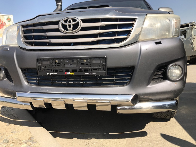 Защита переднего бампера "Grunder" из нержавеющей, полированной стали. Диаметр трубы 76 мм. Толщина стенки 1,5 мм. Марка стали AISI 304, Италия. Защита бампера подходит для автомобиля TOYOTA Hilux (Тойота Хайлюкс) с 2009 года выпуска.