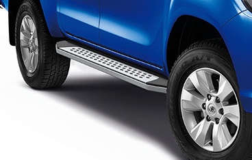 Пороги алюминиевые "BMW-style В". Пороги подходят для автомобиля TOYOTA Hilux (Тойота Хайлюкс) с 2015 года выпуска.