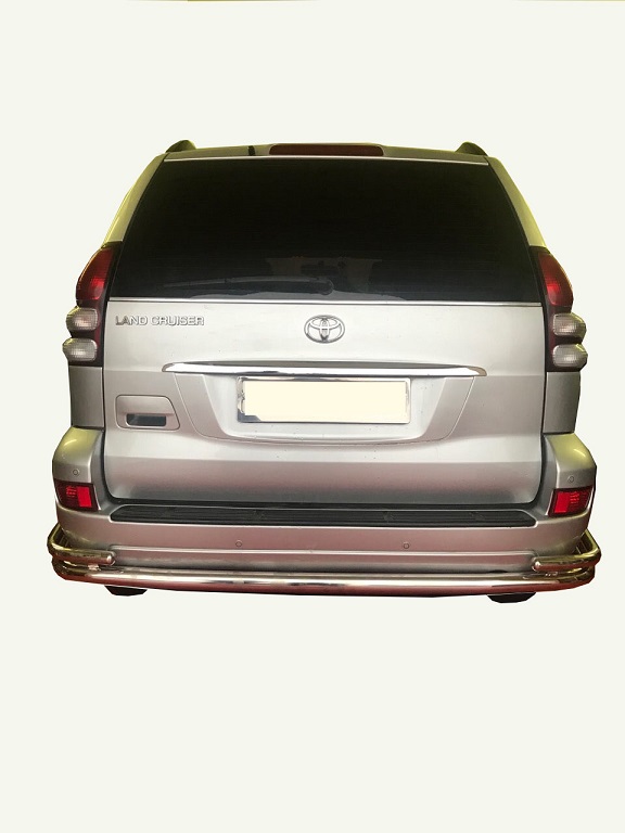 Защита заднего бампера из нержавеющей стали двойная с загибами 76-42 мм TOYOTA Land Cruiser 120 (Тойота Ленд Крузер 120).