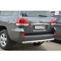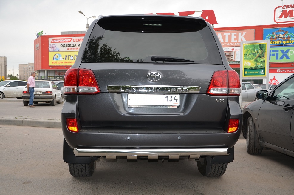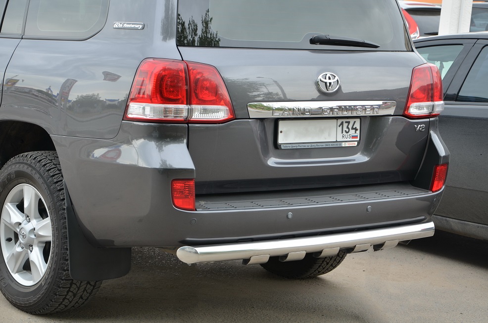Защита заднего бампера с клыками из нержавеющей, полированной стали. Диаметр трубы 76 мм. Толщина стенки 1,5 мм. Марка стали AISI 304, Италия. Защита бампера подходит для автомобиля TOYOTA Land Cruiser 200 (Тойота Ленд Крузер 200) с 2007 по 2012 год выпуска.