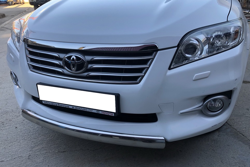 Защита переднего бампера из нержавеющей, полированной стали. Диаметр трубы 60 мм. Толщина стенки 1,5 мм. Марка стали AISI 304, Италия. Защита бампера подходит для автомобиля TOYOTA Rav-4 (Тойота Рав 4) с 2010 по 2012 год выпуска.