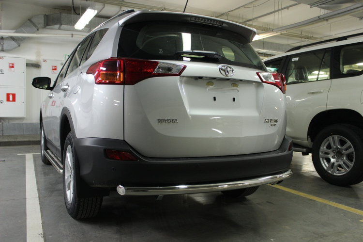 Защита заднего бампера из нержавеющей стали 60 мм TOYOTA Rav-4 (Тойота Рав 4). Подходит для моделей TOYOTA Rav-4 с 2013 года выпуска.