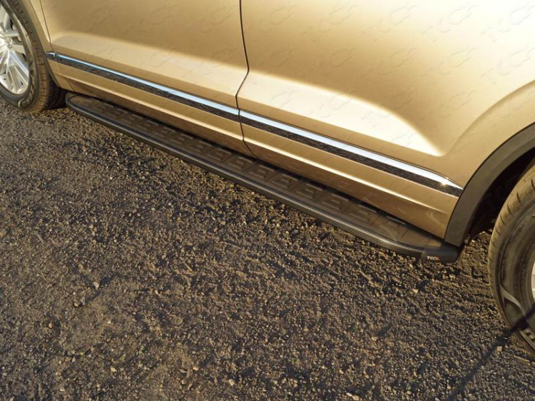 Пороги алюминиевые с пластиковой накладкой карбон (серые, серебро, черные)1920 мм VOLKSWAGEN Touareg (Фольксваген Туарег) с 2018 года выпуска. Выдерживают нагрузку 300 кг.