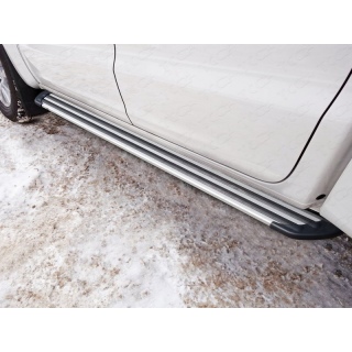 Пороги VOLKSWAGEN Amarok (Фольксваген Амарок) с 2012 года - это неотъемлемая часть любого современного внедорожника. Данный вид навесного оборудования придаёт Вашему автомобилю законченный вид, делает посадку-высадку более комфортной и конечно же защищает автомобиль от царапин и повреждений при боковом столкновении в плотном городском трафике.