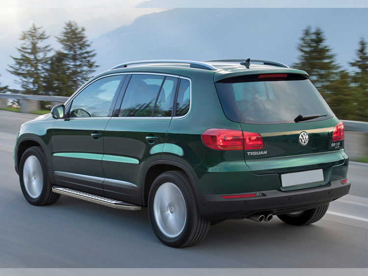 Пороги алюминиевые "BMW-style В". Пороги подходят для автомобиля VOLKSWAGEN Tiguan (Фольксваген Тигуан) с 2011 года выпуска.