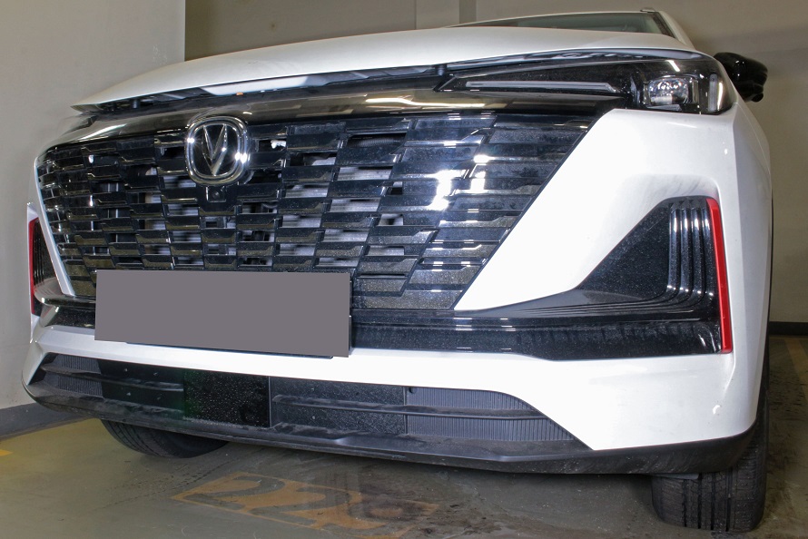 Зимний пакет на стяжке (низ-4 части) на решетку радиатора для автомобиля CHANGAN CS55 (Чанган CS55) с 2017 по 2022 год выпуска.
